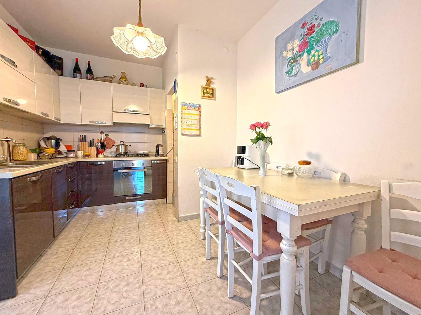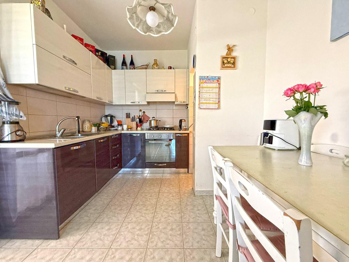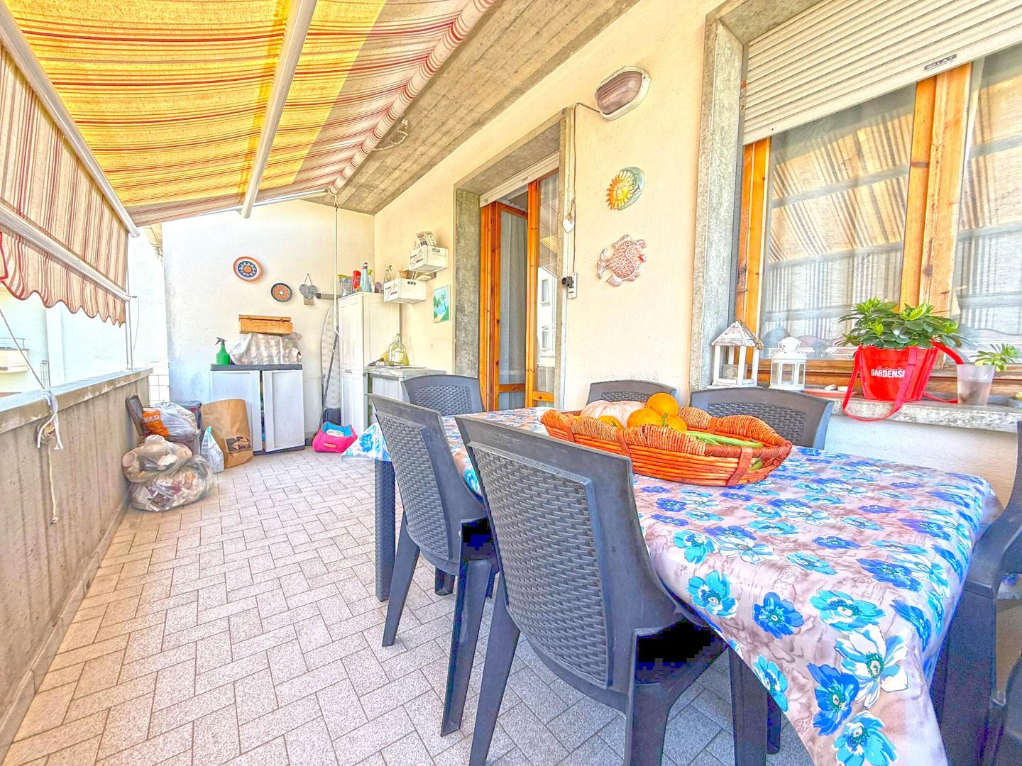All’interno troviamo: Luminoso soggiorno con terrazzo, Cucina a vista con uscita su terrazza pranzabile, ideale per cene all’aperto, Comodo ripostiglio, Camera matrimoniale, Camera media e Bagno.