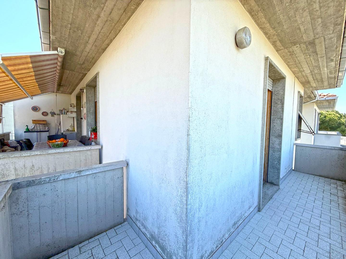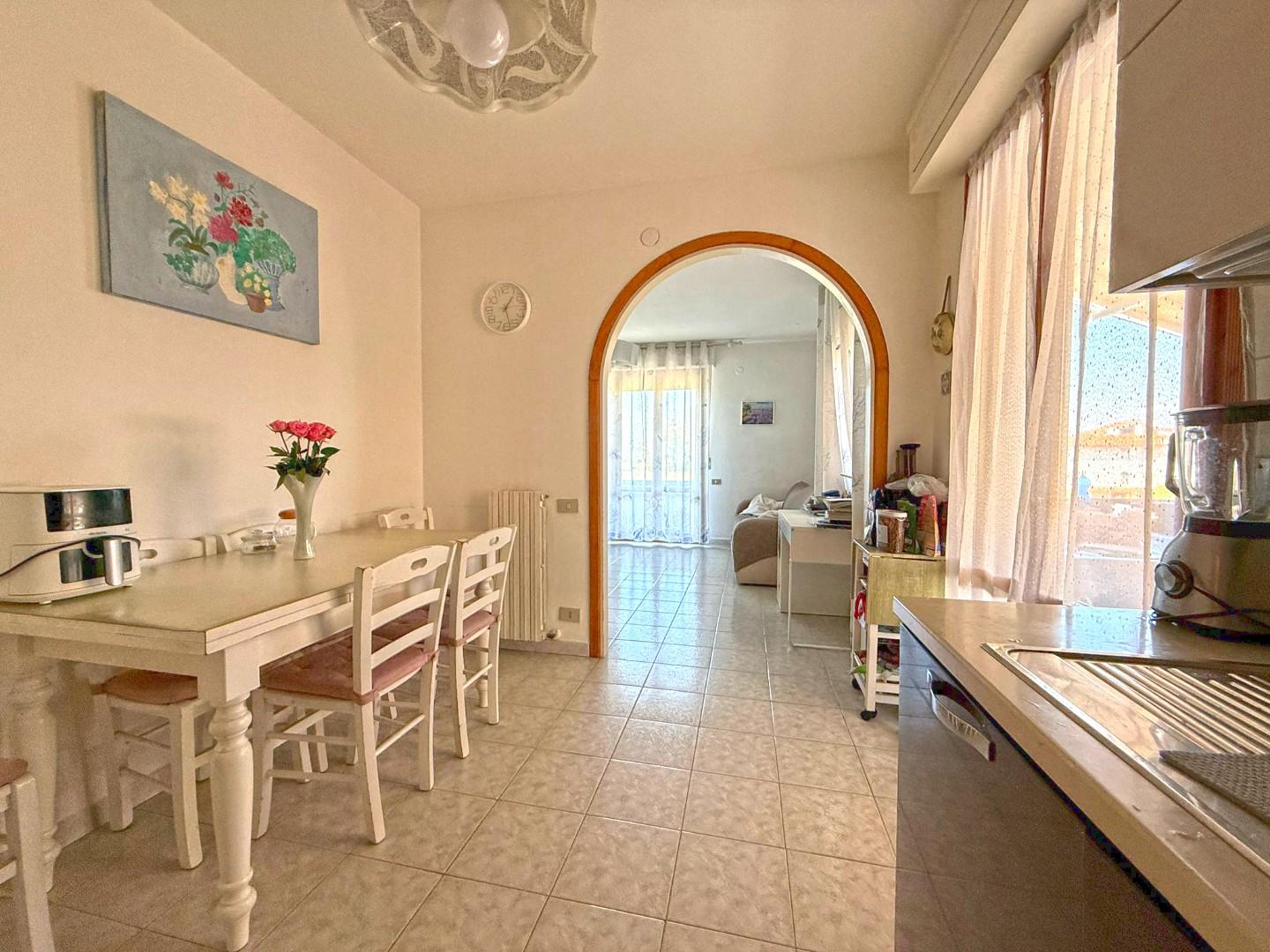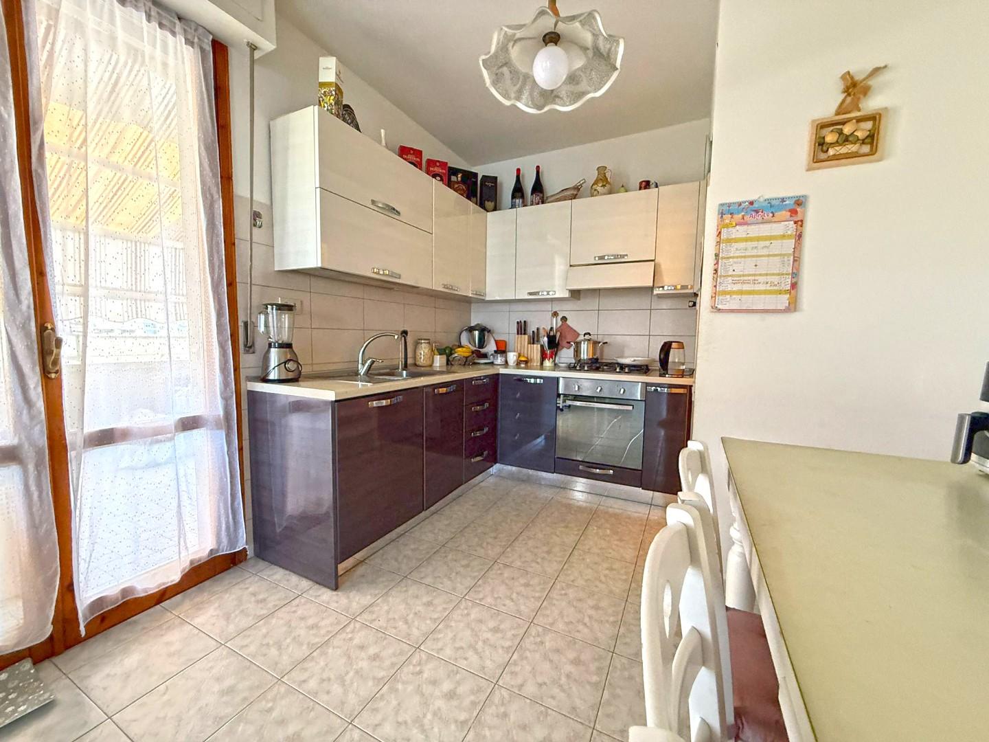 All’interno troviamo: Luminoso soggiorno con terrazzo, Cucina a vista con uscita su terrazza pranzabile, ideale per cene all’aperto, Comodo ripostiglio, Camera matrimoniale, Camera media e Bagno.